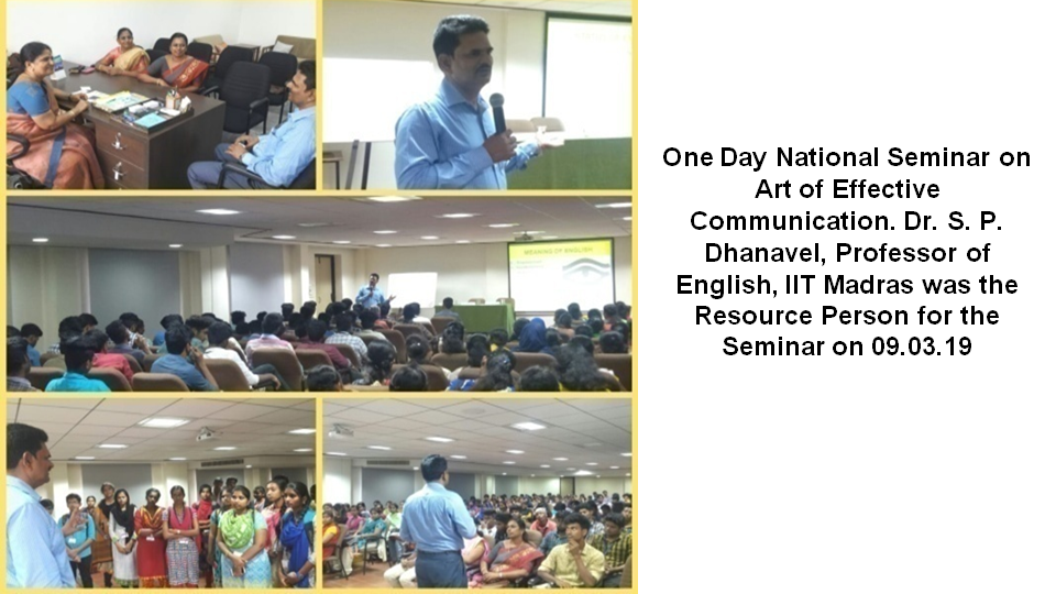 - One day national seminar on Art of Effective Communication, Dr. S. P Dhanavel, Professor of English, IIT Madras was the Resource Person for the seminar on 09.03.19.